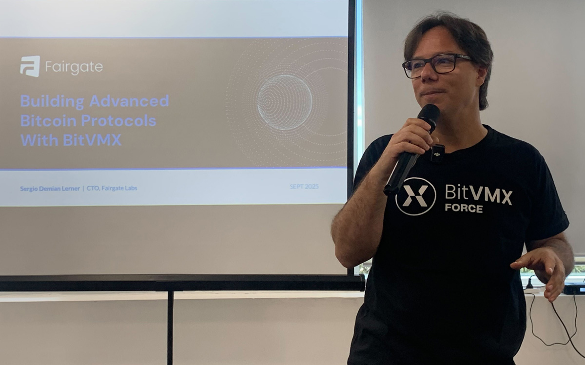 Sergio Lerner opened the workshop with an overview of BitVMX, introducing the platform that brings practical, general-purpose computation to Bitcoin. His session focused on the architectural goals of BitVMX and the design choices that enable optimistic execution without requiring changes to Bitcoin’s consensus rules. In the follow-up talk, Martín Jonas detailed the implementation of a RISC-V virtual CPU on top of Bitcoin.